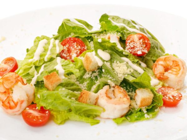 Креветки, обжаренные во фритюре, лист салата, соус Цезарь, помидор, пармезан / 210 гр /