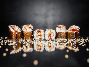 Рис, нори, сливочный сыр, краб, огурец, угорь, кунжут, унаги соус / 8 шт. / 250 гр.