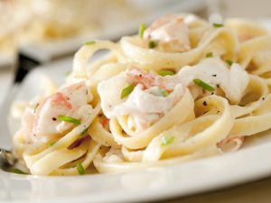Лапша, жареный бекон, сливочный соус, сыр пармезан / 450 гр.